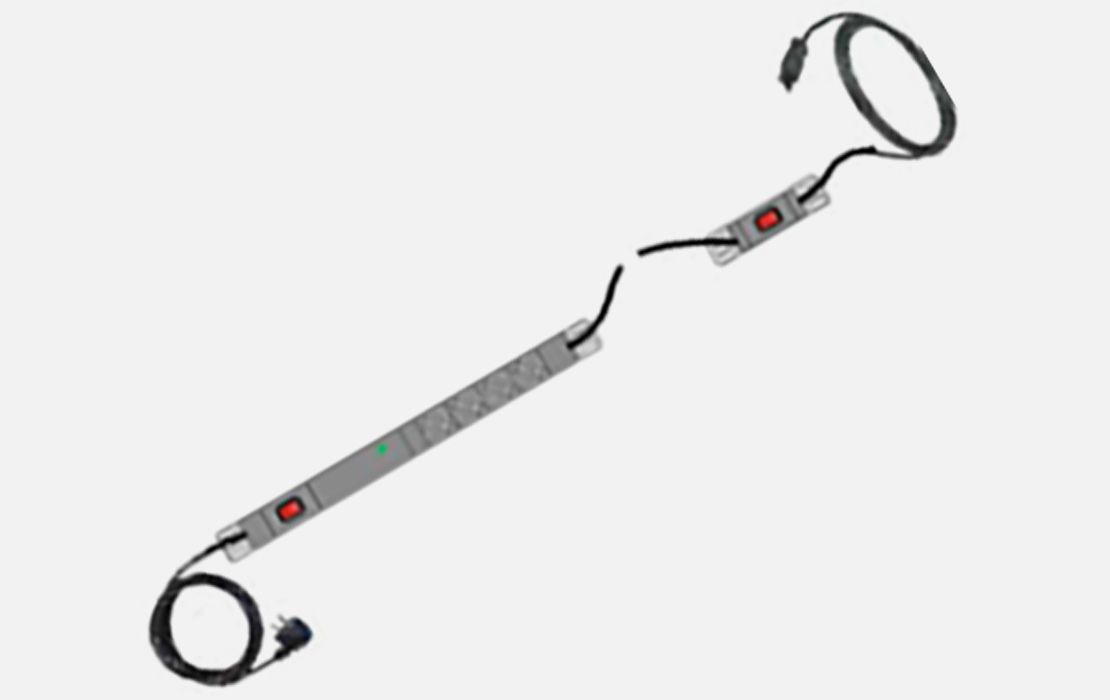 Zuleitungskabel ca. 2,5 m mit abgewinkeltem Schuko-Stecker, Verbindungskabel zwischen Alu-Energieleiste und separatem Schalter L= 2,0 m, Anschlussleitung zur Langfeldleuchte ca. 1,5 m mit GST 18i-Buchse.