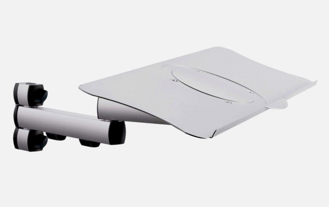 • Hochwertiger stufenlos verstellbarer Tastaturhalter mit zwei teiligem Gelenkarm