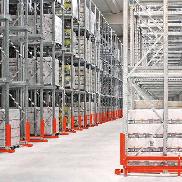 Einfahr-/Durchfahrregale auch „Drive-in-Regale“ genannt, eigenen sich für die statische Bereitstellung von palettierten Massengütern wie Konserven, Waschmittel, Warenkataloge. Einfahrregale sind ideal geeignet, um druckempfindliche und instabile Ware zu lagern aber auch als Saison- oder als Pufferlager einsetzbar.