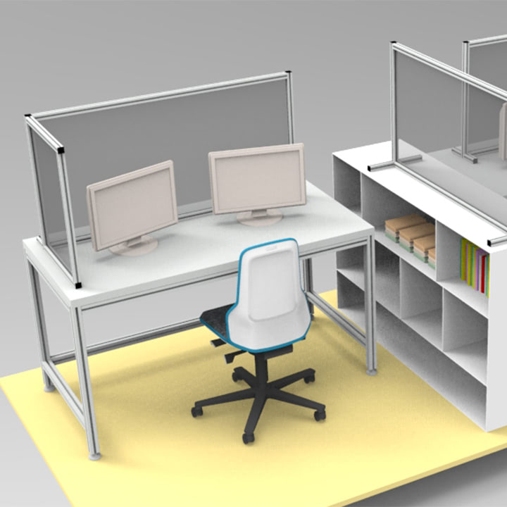 Unsere Sicherheitsprodukte wie Hygiene- und Virenschutzwände erhöhen die Sicherheit am Arbeitsplatz. Unsere Aluminiumprofile und Polycarbonat-Scheibe(n) lassen sich mit nur wenig Werkzeug zu einer wirkungsvollen Schutzwand gegen Tröpfchen-Infektionen zusammenfügen und am gewünschten Standort aufstellen.