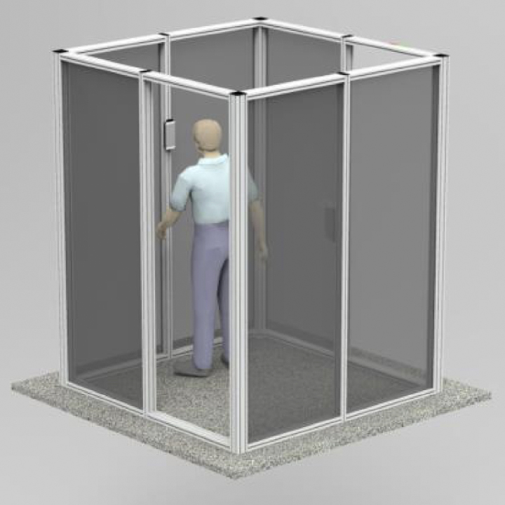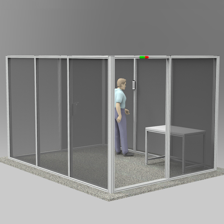 Die kontaktlose Sicherheitsschleuse besteht aus hochwertigen „tabtec®“-Profilen der Marke tabflow® sowie nahtlos darin eingefassten Plexiglasscheiben.